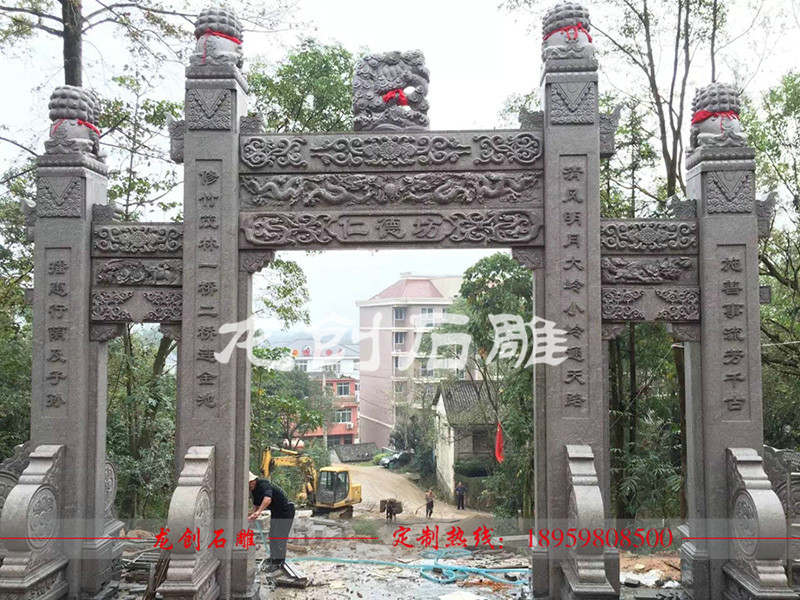最后,石雕牌坊的安裝也很重要,由于石雕牌坊是由多塊拼接而成,所以使用什么粘合,怎么安裝等等方面都決定了石雕牌坊的質量。在這方面大家可能會比較陌生,這里是建議大家咨詢石雕廠家進行一個詳細的咨詢。選擇優質的石雕牌坊廠家,生產出來的石雕牌坊自然質量也會好。想要了解更多關于石雕牌坊知識、購買石雕牌坊的朋友可以聯系龍創石雕業務經理,我們公司石雕產品種類齊全,價格實惠,自有礦山,一手直銷,專注石雕二十年,歡迎大家來電咨詢!