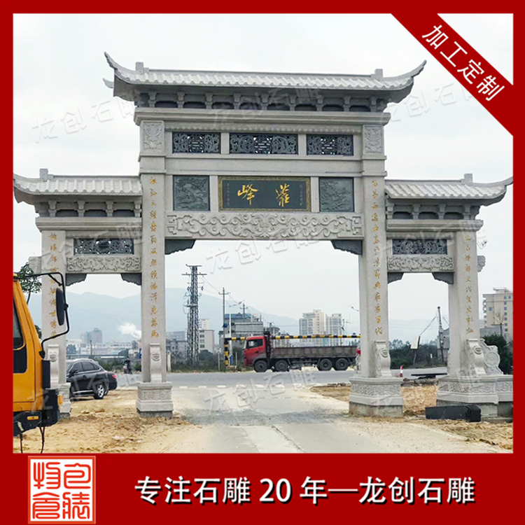 石雕牌坊又稱石雕牌樓、石牌坊、石牌樓,為門洞式紀(jì)念性建筑物,宣揚(yáng)封建禮教,標(biāo)榜功德。石雕牌坊也是祠堂的附屬建筑物,昭示家族先人的高尚美德和豐功偉績(jī),兼有祭祖的功能,牌坊更被海外當(dāng)作漢族文化的象征之一。主要用于寺宅的廊柱、門墻、牌坊等處的裝飾,享譽(yù)甚高。