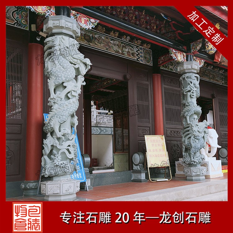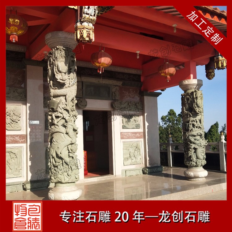 常見寺廟龍柱的制造石材有青石、白石以及其他花崗巖石料,如果雕工要求很復(fù)雜的,一般是以青石為原材料,青石的石料單價也要貴很多。做工簡單的,則一般建議用普通的白石即可。普通的白石龍柱會比較便宜,一般三四萬塊就能買到一對合適的3米高龍柱,以浮雕技藝為主。而真正價格較高的龍柱則一般是青石龍柱。龍柱一般有單龍和雙龍之分,雙龍的略貴一些,單龍的便宜一點。龍柱上面除了雕刻龍外,還會雕刻很多其他圖案。中華民族的圖騰是龍圖騰,中國人是龍的傳人,所以龍柱是無論什么國內(nèi)宗教場所、公眾場所都會擺立的。