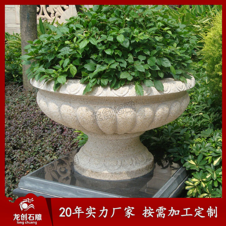 石雕花缽就是我們在一些景觀或是園林中見到的一些石雕花盆,是種花用的器皿,制作樣式口大底端小的倒圓臺或是倒棱臺形狀。石雕花缽都是用石材雕刻制作而成的,石雕花缽的制作石材質地堅硬致密、強度高、抗風化、耐腐蝕、耐磨損、吸水性低,加之石材本身的色澤以及石材的質地還能保存百年以上,制作出的石雕花缽顏色看上去也比較美觀。