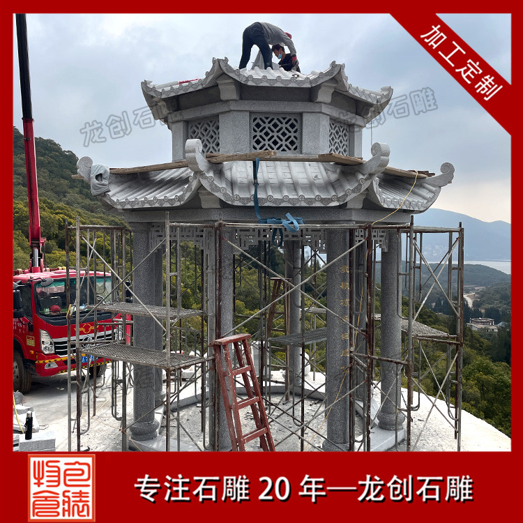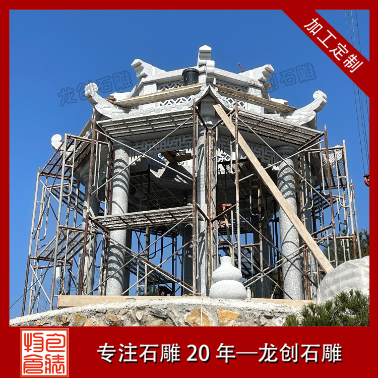 接下來,要進行組裝與安裝。石雕涼亭的組裝和安裝也是一個重要的環節,組裝時需要對每個零件進行正確拼接,以確保涼亭不會出現傾斜、晃動等情況。安裝時,需要找到一個平整的地基,然后將涼亭整體安裝上去。