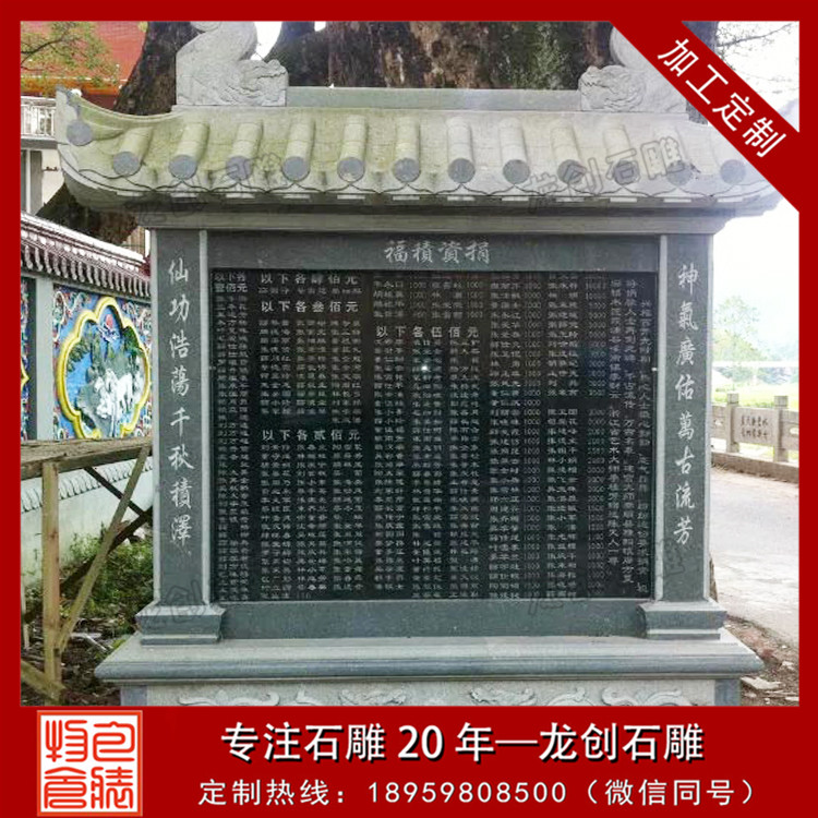 在傳統的中國文化中,祠堂是家族或宗族進行祭祀、教育和聚會的重要場所。而捐資功德碑和芳名碑,則是記錄家族成員捐資助學或其他社會公益活動的重要形式,具有極高的文化和歷史價值。今天我們將圍繞“祠堂捐資功德碑芳名碑一般做多大尺寸”這一話題,深度探討其尺寸、設計、材料及相關注意事項,以便幫助家族或宗族更好地傳承和表達文化,促進和諧家庭關系。一個優質的捐資功德碑,不僅僅是一塊石碑,它更承載著濃厚的家族情結和文化印記。