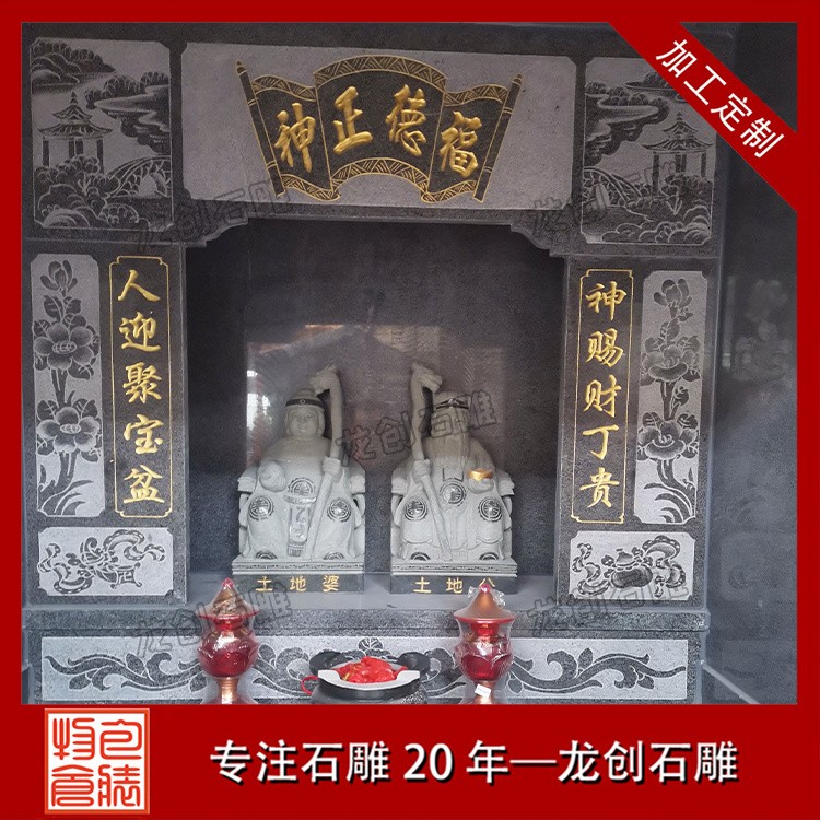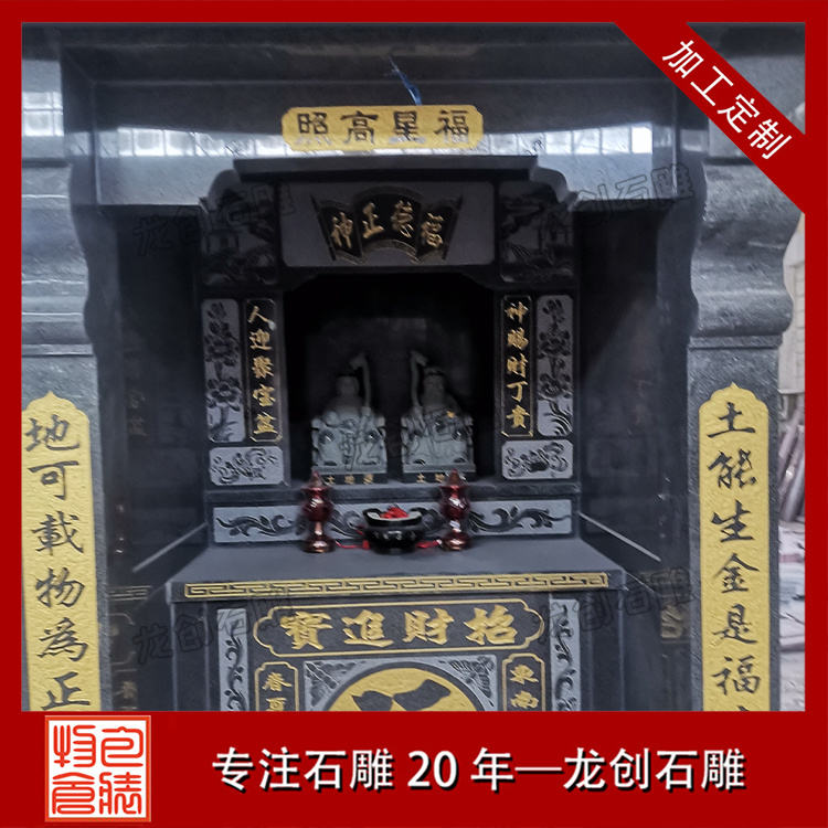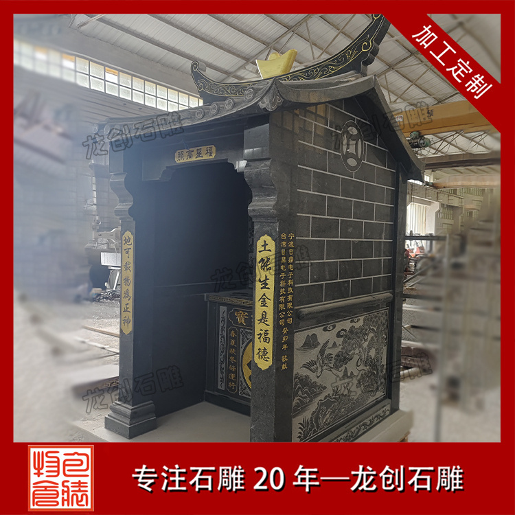 在浙江寧波的金蓮寺改造項目中,一座精美的石雕土地廟成為點睛之筆。這座土地廟采用優質芝麻黑654石材,質地堅硬,色澤溫潤。廟身的雕刻工藝精湛絕倫,高2.9米,寬1.36米,深度1.63米,整體造型古樸典雅,遵循傳統廟宇建筑風格,飛檐斗拱線條流暢,比例協調;墻體厚實,雕紋精美,線條流暢。其內部空間布局合理,土地神像安置其中,更顯威嚴。