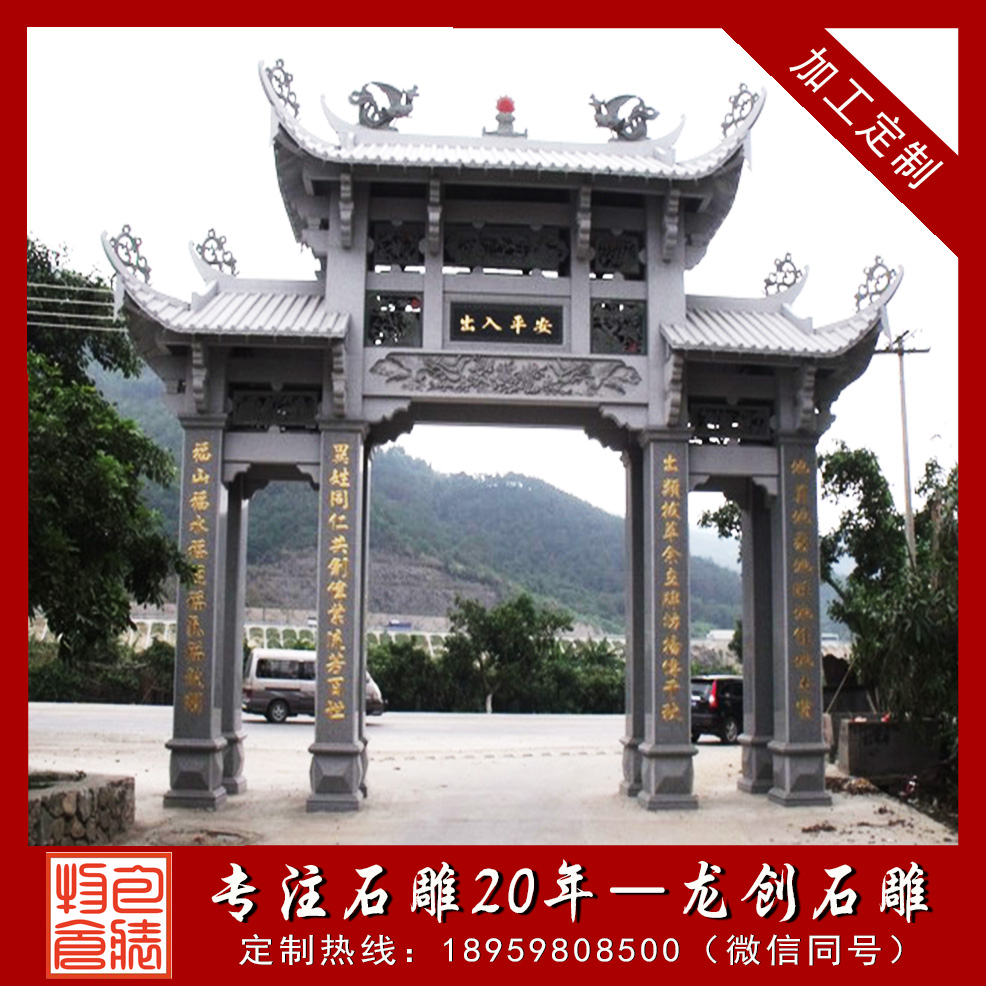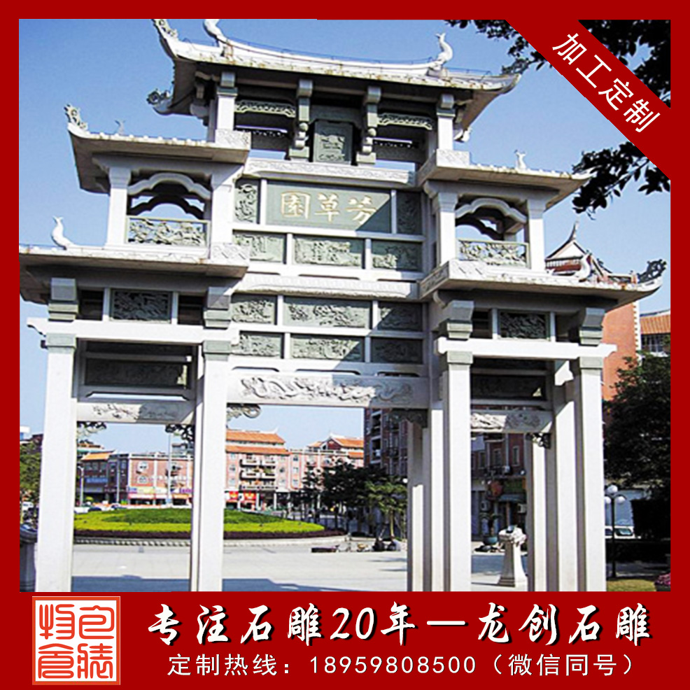 龍創石雕專業生產石雕牌坊(石雕牌樓、石雕山門)生產加工廠家,專業從事石雕牌坊生產加工批發,提供各式石雕牌坊(青石牌坊、花崗石牌坊、漢白玉牌坊、大象石雕牌坊),各式石雕山門工藝品造型。誠摯邀請來電咨詢石雕牌坊價格本公司提供石雕山門牌坊造型、石雕牌樓山門樣式、石雕牌坊樣式、花崗石牌坊圖片、青石牌坊圖片、大型牌樓圖片等等。專業生產石雕牌坊。專業生產石雕牌樓。專業生產石雕山門。福建石雕牌坊廠家?;莅彩裆介T生產廠家。福建牌樓專業供應商。