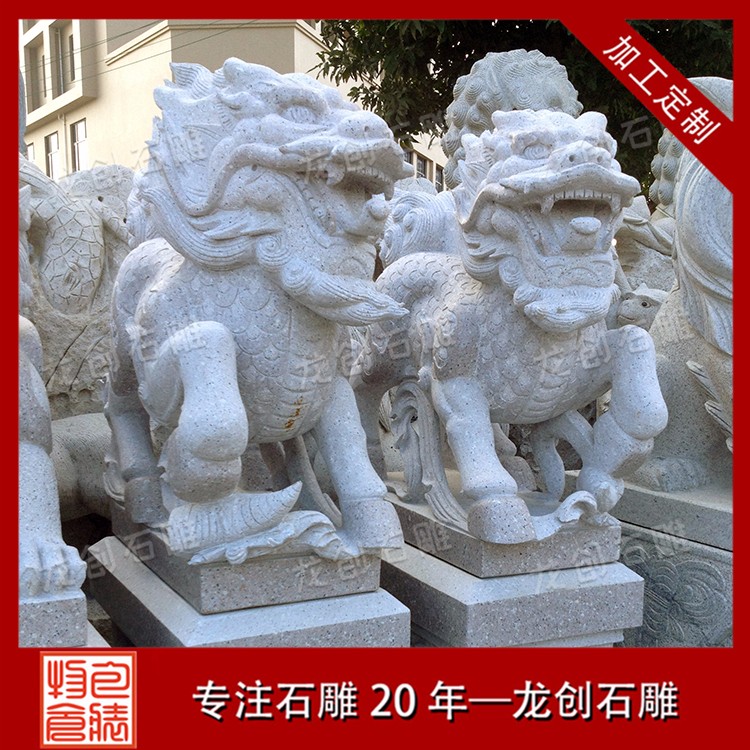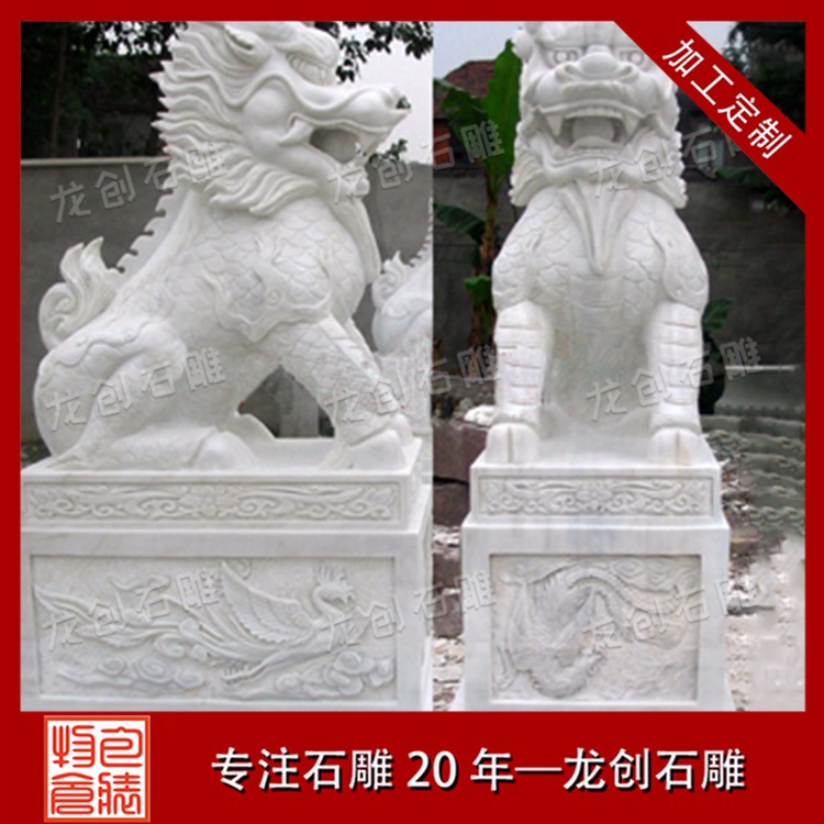 麒麟本身是具有集大成寓意的瑞獸,在民間被廣泛推崇。以麒麟為形態(tài)打造的石雕麒麟,可用于造景、點(diǎn)綴空間、祈福、轉(zhuǎn)運(yùn)等等。漢白玉制作的麒麟石雕,不僅可以實(shí)現(xiàn)麒麟的美好寓意,而且在開(kāi)光之后,更具有鎮(zhèn)宅、化煞、祈福、招財(cái)?shù)撵`力。所以,一對(duì)麒麟石雕既可以放置在商業(yè)大樓正門(mén),也可以擺放在住宅區(qū)、別墅區(qū)的正門(mén)。風(fēng)景區(qū)、陵園區(qū)、寺院道觀等,擺放麒麟可以帶來(lái)吉祥寓意的風(fēng)水作用,保佑來(lái)玩的人群,鎮(zhèn)宅辟邪。漢白玉石雕麒麟開(kāi)光,可以以日月光洗禮,吸收日月精華來(lái)開(kāi)啟麒麟石雕的靈性,也可以請(qǐng)寺廟大師念經(jīng)開(kāi)光。