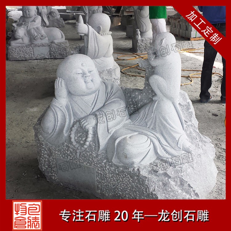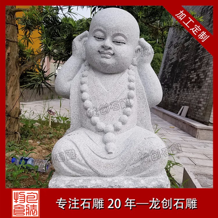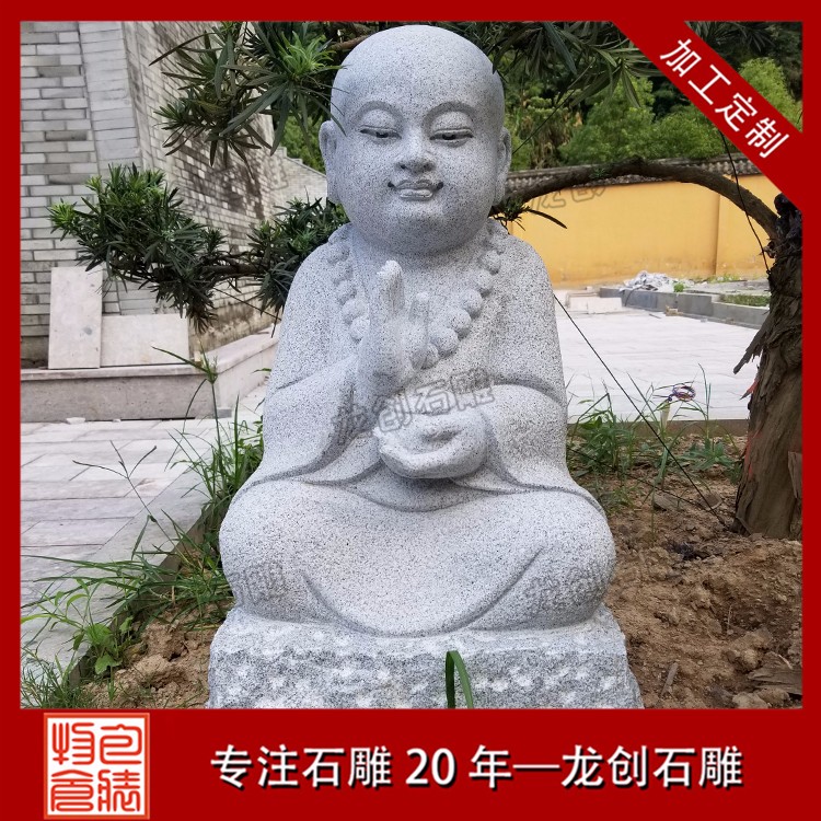 石雕小沙彌是從小就進(jìn)入寺院修煉佛法的孩子,俗稱小和尚。小和尚憨態(tài)可愛,在修習(xí)佛法的日常生活中,無憂無慮、懵懂、趣味的生活形態(tài)被人們以石雕的形式記錄下來,讓人們感受到小孩子的無邪與活潑。我們龍創(chuàng)石雕雕刻出來的石雕小沙彌可愛呆萌的形象而逗人一笑。