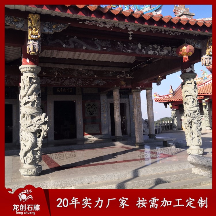 石雕龍柱又叫石雕龍抱柱、盤龍柱、滾龍柱、蟠龍柱,指在石頭上雕刻龍紋的具有指示作用的柱子。龍柱全身雕刻龍紋,一般柱子上下雕刻兩條龍,龍浮雕一般雕刻深度在3-5cm,也有雕刻7-10cm的,深度雕刻的越深龍紋越明顯,龍的神圣形象也就越突出,整個柱子也就越具有莊嚴神圣感。