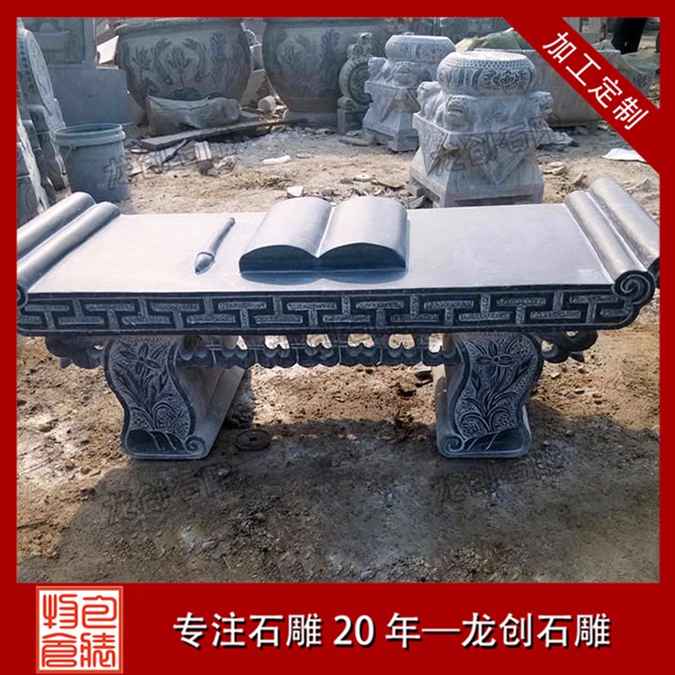 石雕供桌常見款式為長方形,石頭材質屬于青石,面中間是一精致的神臺供桌,雕刻一龍王看廟,高度約與方桌相等。祭祀時常供設香爐、蠟竿和擺放供品,此為石頭所制,故名石供桌(神臺)。供桌常見幾種地方擺放,廳堂供桌、佛堂供桌、寺廟供桌、神臺供桌等,與其配套的有香爐、石鼎。龍創(chuàng)石雕有限公司為石雕供桌定做廠家、青石供桌生產(chǎn)加工廠家、漢白玉供桌生產(chǎn)加工廠家,提供各式石材供桌加工,青石九龍供桌、專業(yè)生產(chǎn)青石供桌、花崗巖供桌、大理石供桌、青石供桌批發(fā)、供桌生產(chǎn)加工等等。