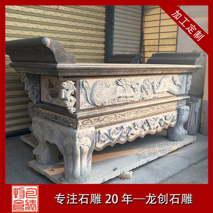 石雕供桌定做價格一般根據(jù)其材料不同、顏色不同、大小及工藝的雕工復雜程度的不同,石雕供桌價格區(qū)間一般在5000-30000元每副。