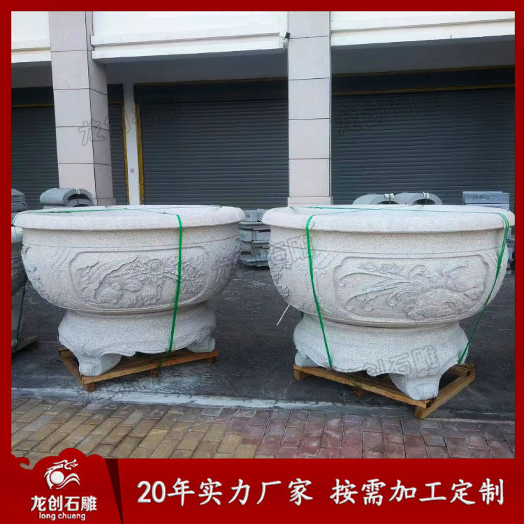 現(xiàn)在我們在小區(qū)、別墅、公園廣場等場所使用的石花盆,大都會選擇花崗巖材質的,這是為什么呢?只要是因為花崗巖材質堅固,品種顏色也很多,重要的一點是價格很實惠,花崗巖石雕花盆又分為黃銹石石雕花盆花缽、白麻石雕花盆、芝麻白石雕花盆、芝麻黑石雕花盆、黃金麻石雕花盆等。這些花崗巖材質都很耐磨損,適用于室內(nèi)外。