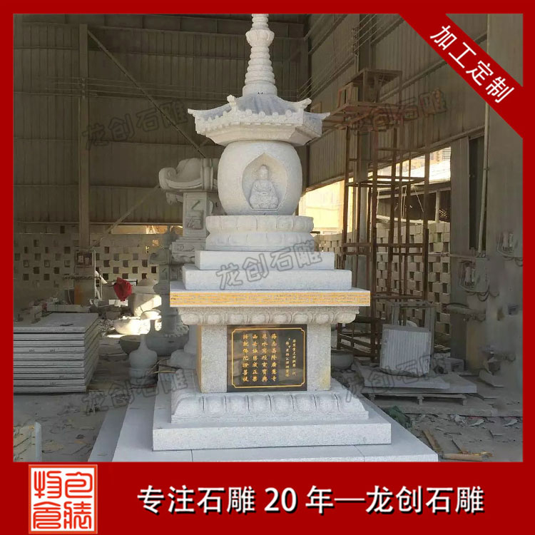 石雕舍利塔,是儲放佛祖釋迦摩尼或后人得道高僧舍利子的塔,這種是儲放舍利子和經卷的塔,是我國五千多年文化史的質粒載體之首,舍利寶塔是大家表達對諸佛皈依和感謝的方法。按置佛舍利之寶塔,稱之為舍利塔。因塔內儲放舍利子而出名,被佛教界人員譽為佛塔。“舍利子”為本人戒定慧修習貢獻之結晶體。都是表明修道人已得成效的見證人,能夠堅定不移徒弟修習。因而佛徒見到舍利即像見到佛菩薩,頂禮參拜,真誠供給。