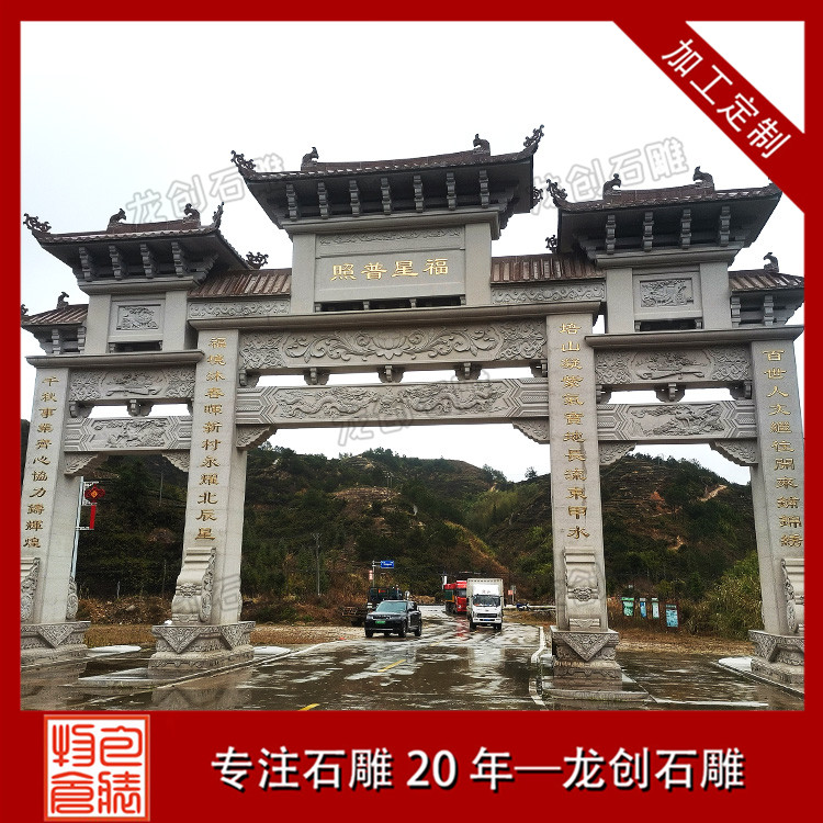石雕牌坊是我國傳統古建筑的一部分,村莊石雕牌坊也稱村口石雕牌坊、農村石雕牌坊,一般是建在村莊的入口處,村莊石雕牌坊是一種仿古建筑,古樸大方,具有很高的歷史文化價值和觀賞價值。