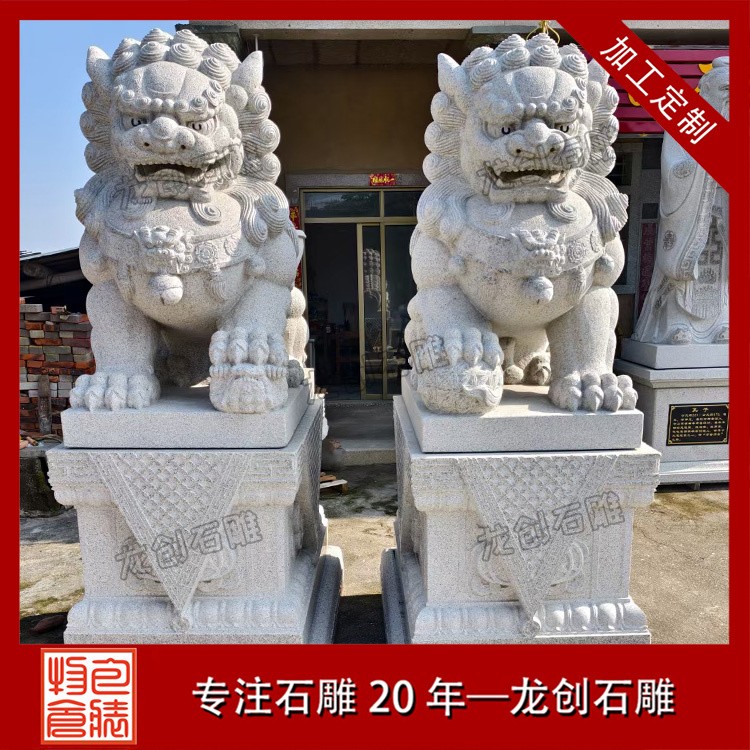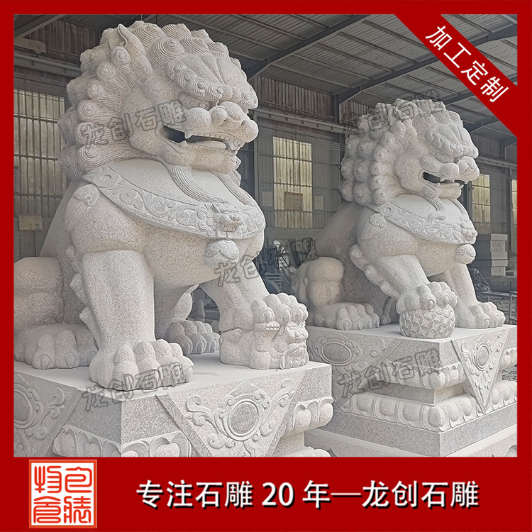 材質(zhì)與工藝:這些石獅子通常由質(zhì)地優(yōu)良的石材雕刻而成,工藝精湛,細(xì)節(jié)處理得當(dāng)。