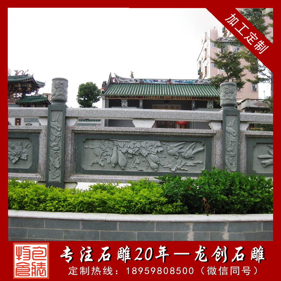 從欄桿的雕刻用料看,普通青石、綠色青石等是比較基礎的雕刻材料,普通青欄桿價格在500-700元左右,根據雕刻建造情況,欄桿的價格也都會有所不同??紤]到現在特殊區域使用需求,也有不少選擇綠色青石欄桿或者綠山巖欄桿,高的話達到1000元以上等等。