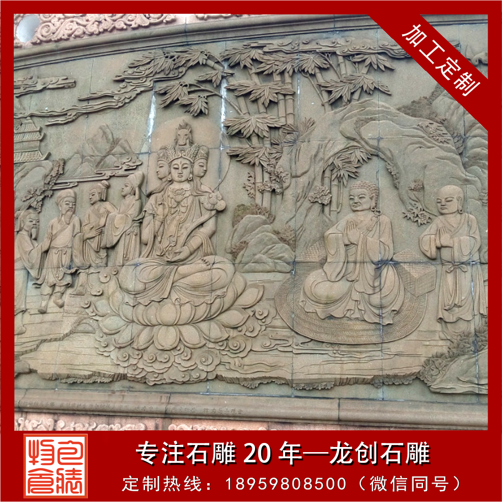 佛教寺廟浮雕壁畫(huà)所雕刻的內(nèi)容涵蓋了許多方面,有的是寺廟的歷史沿革,有的是諸佛菩薩的經(jīng)典典故,有的則是寺廟供奉主佛、菩薩的一些人物故事,這些所稱的故事中必然是在佛經(jīng)中有明確記載的。這種浮雕壁畫(huà)一般會(huì)采用青石或芝麻黑花崗巖石料,是因?yàn)檫@些石材的顏色相對(duì)深一些。在雕刻較多的人物形象時(shí),可以清晰地體現(xiàn)出來(lái),包括人物的每一個(gè)動(dòng)作,而這是其他石材沒(méi)辦法達(dá)到的效果。