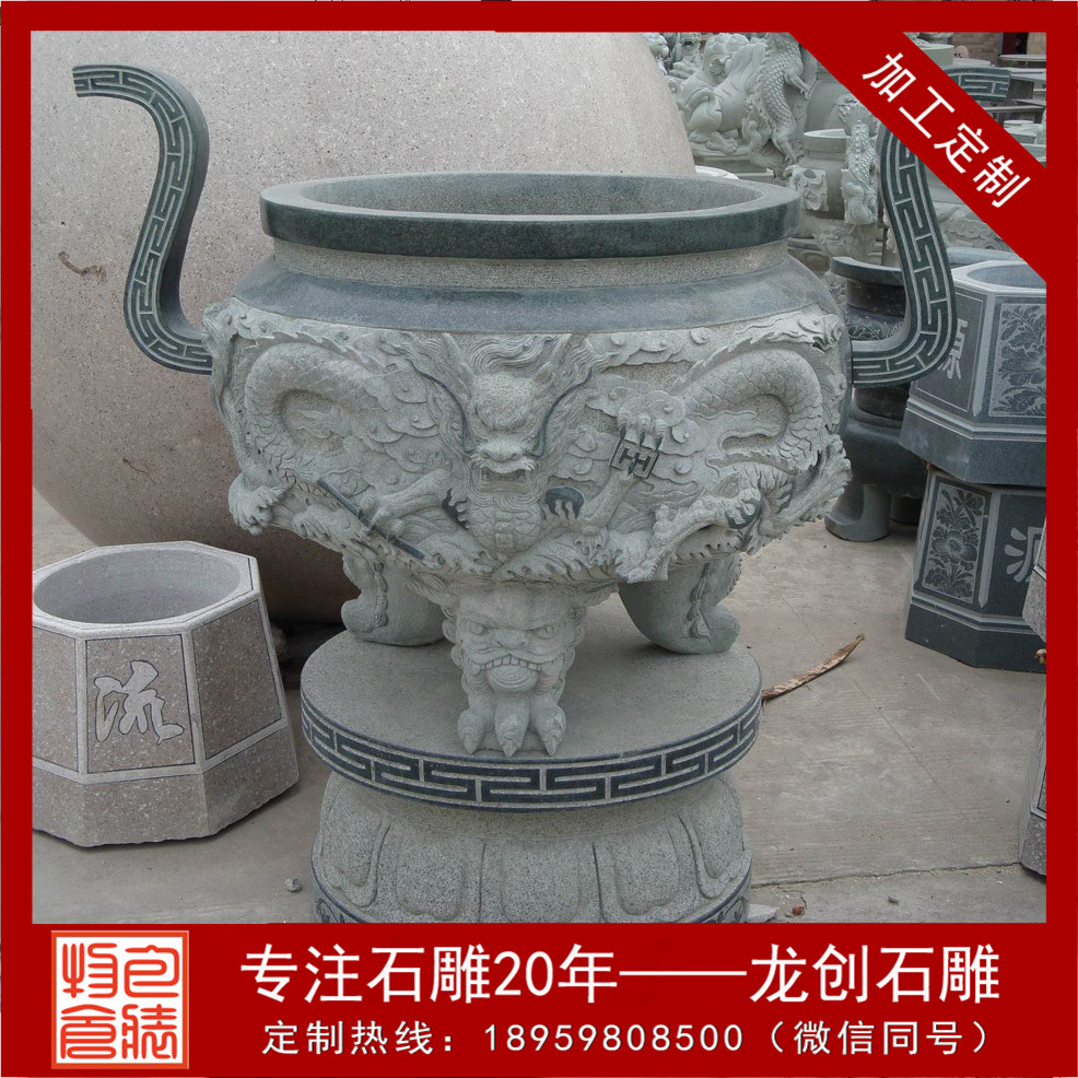 龍創(chuàng)石雕關(guān)于寺院香爐、大型香爐、石雕香爐的款式是應有盡有,客戶案例更是不在其數(shù),如果你有需要,可來圖定做,或者我們提供款式給您參考,又或者隨時歡迎您來我司考察!