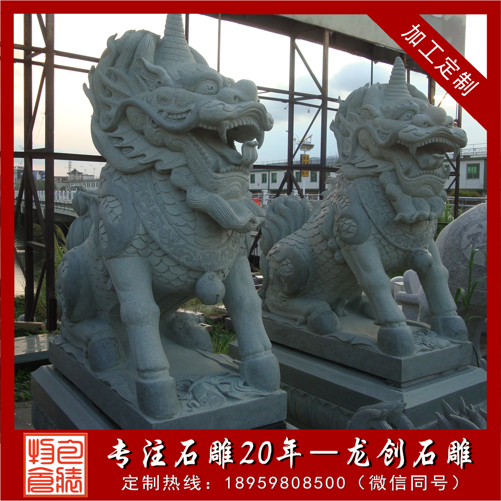第1,麒麟造型的設計。麒麟是個傳統的吉祥符號,在中國傳統文化中占有重要的地位。一對石雕麒麟如果造型講究的話,那么價格也會比較高。石雕麒麟的作用有很多種,可以是活潑可愛的,也可以是沉穩內斂的,還可以是俏皮的等等,無論什么造型的麒麟,只要是有一定的特點只要是造型精致的,那么這樣的作品價格也比較高。