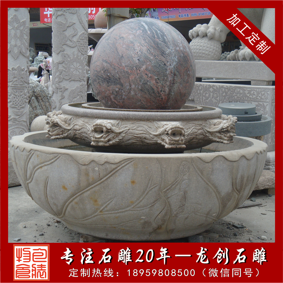 石雕風(fēng)水球常見(jiàn)的石料有黃銹石、楓葉紅、松香玉、山西黑、白麻石、大理石、花崗巖、漢白玉等;轉(zhuǎn)動(dòng)的身軀,舞動(dòng)的旋律,潺潺流水托起一個(gè)偉大的奇跡!讓我們一起感受生活,感受生命,感受偉大的力量,感受人生的哲理!