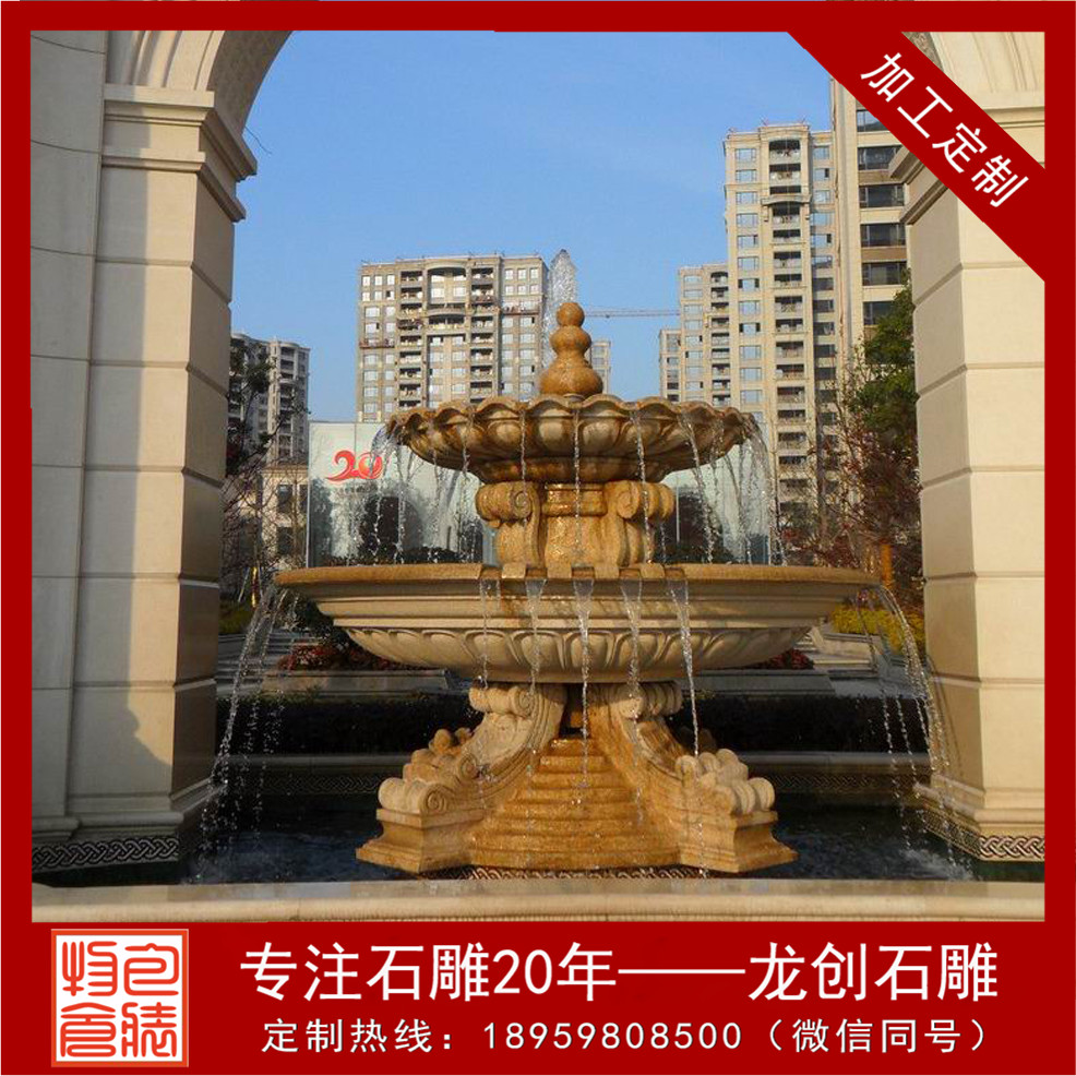 大理石噴泉給予周邊的寸土增添了一絲生機與活力,其所在地的不同也以為著其表達的情感與寓意更是千變萬化,它讓周邊的色彩、空氣煥然一新。
