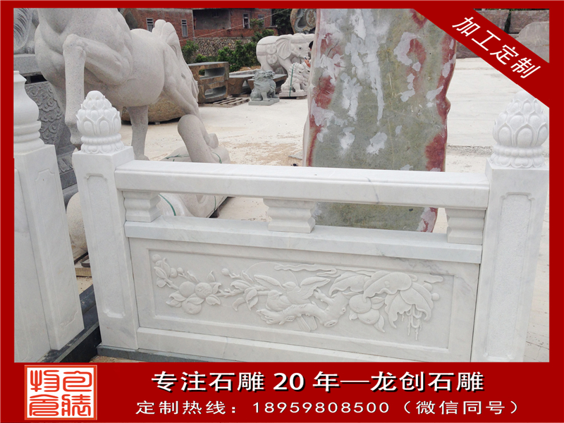 惠安龍創石雕工藝有限公司有多年生產雕刻欄桿的經驗,長期生產加工各式材料的青石欄桿、大理石欄桿、漢白玉欄桿、河道石欄桿、石拱橋等,公司良好的管理團隊和石材專業技術人員秉承“顧客至上,銳意進取”的經營理念,堅持“客戶一”“誠信+質量”的原則為廣大客戶提供優質的服務。
